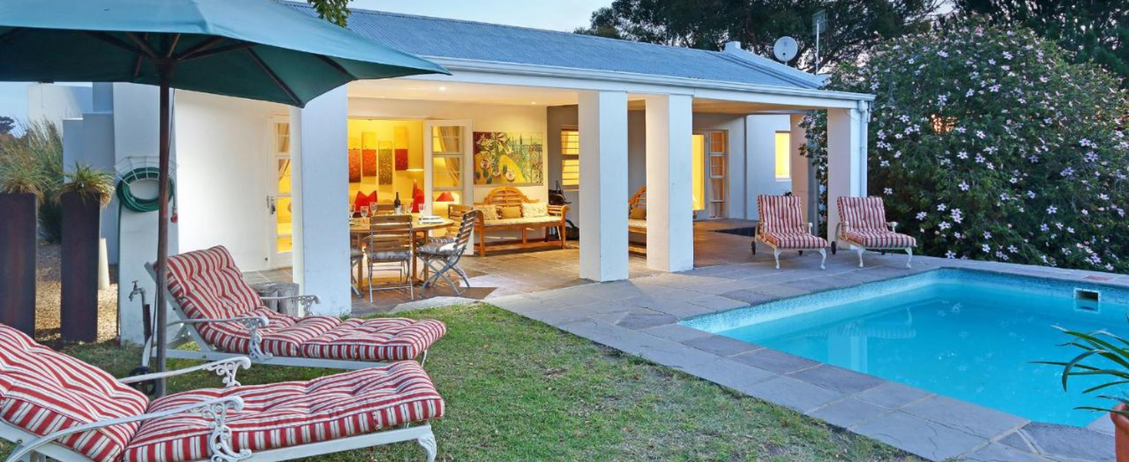 Boulders Cottage is a private villa with three well-appointed bedrooms, including two en-suite king-size bedrooms and a single bedroom. It sleeps up to 5 guests. With a private pool and garden area.